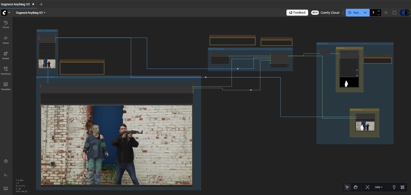 SAM2 Segmentation in ComfyUI is a fast solution for generating alpha masks from video—especially when you need quick garbage mattes or reference masks without spending hours in manual roto. It’s not perfect, but when paired with traditional VFX tools, it becomes a solid accelerator in your workflow.